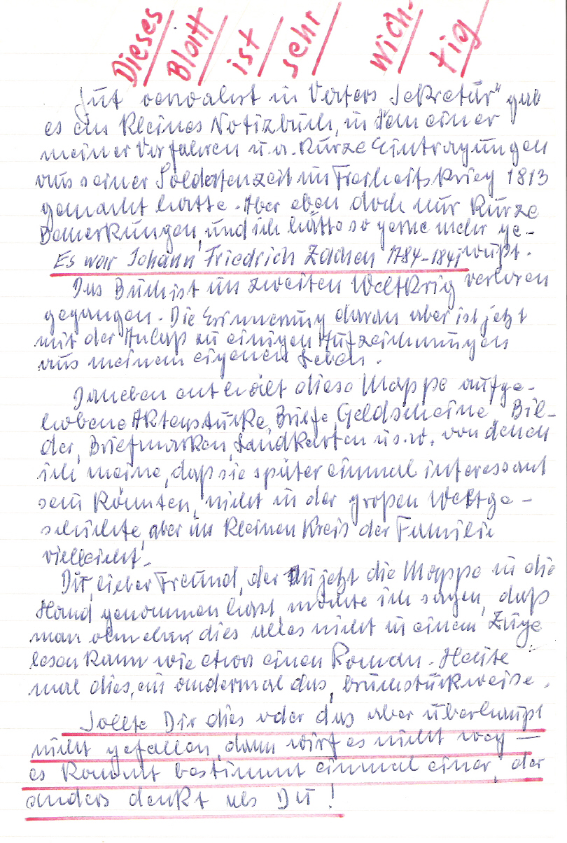 Und in einer dieser Mappen findet sich dann auch ein Hinweis darauf, wie ein Erlebnis in jungen Jahren ihn überhaupt auf diese etwas besondere Form der Sammelleidenschaft gebracht hatte: ... Dieses Blatt ist sehr wichtig
